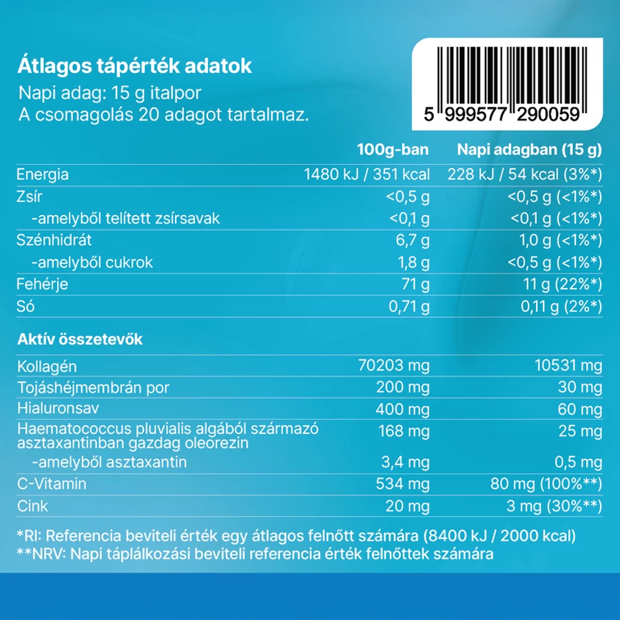 - Egy adag 10 531 mg hidrolizált kollagént tartalmaz, amely a kollagén könnyebben emészthető és hasznosítható formája.